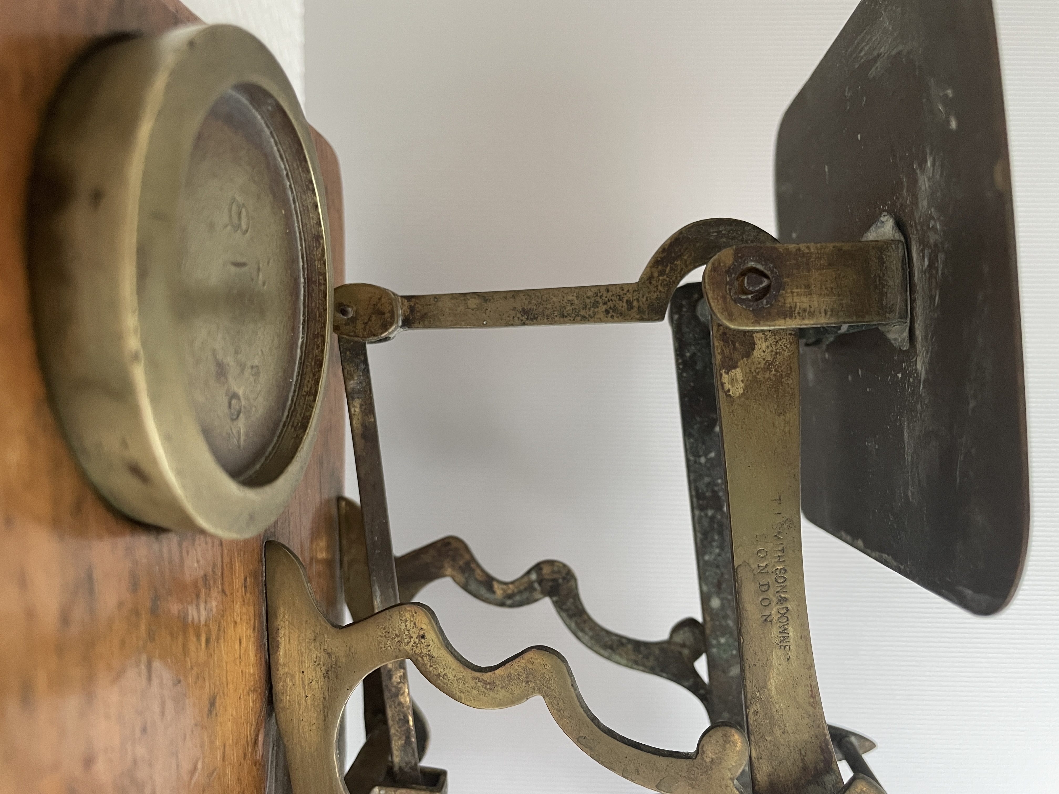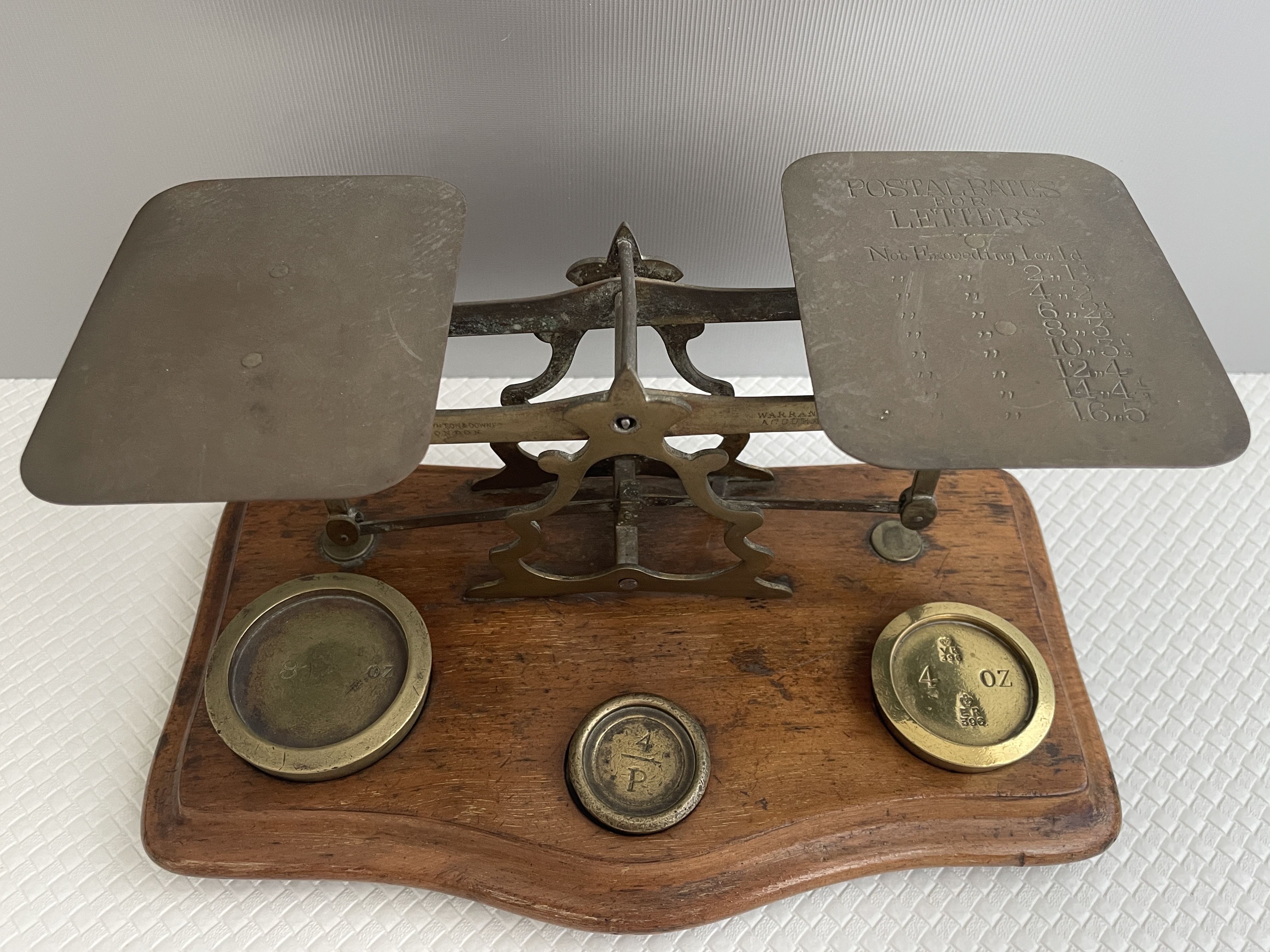 Postweegschaal van rond 1880 gemaakt door de vermaarde Engelse firma T.J. Smith, Son & Downes uit Londen.